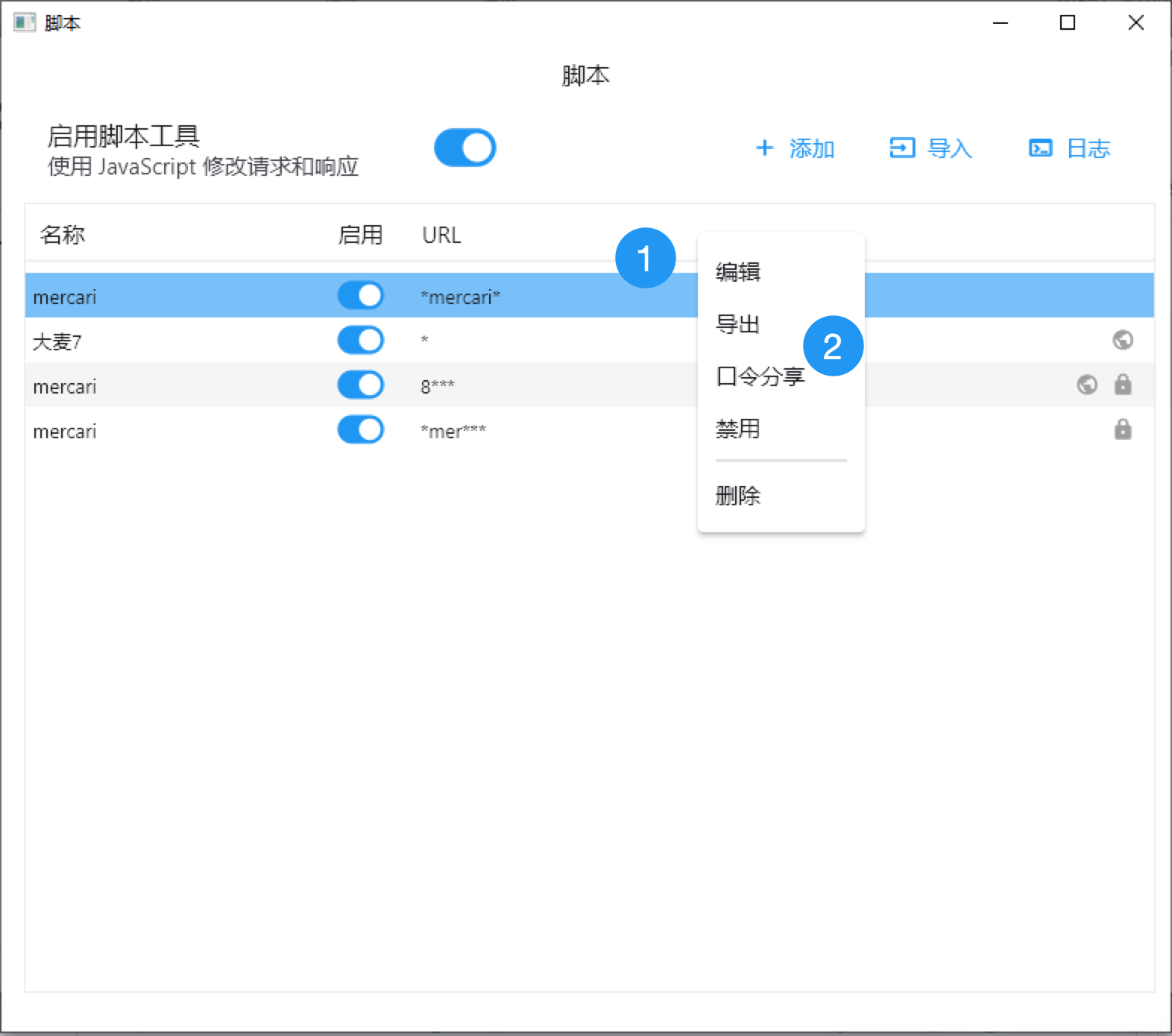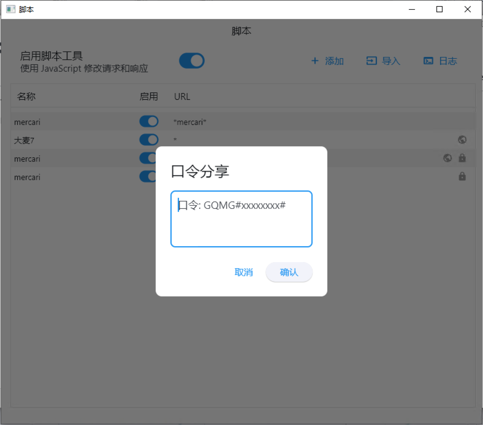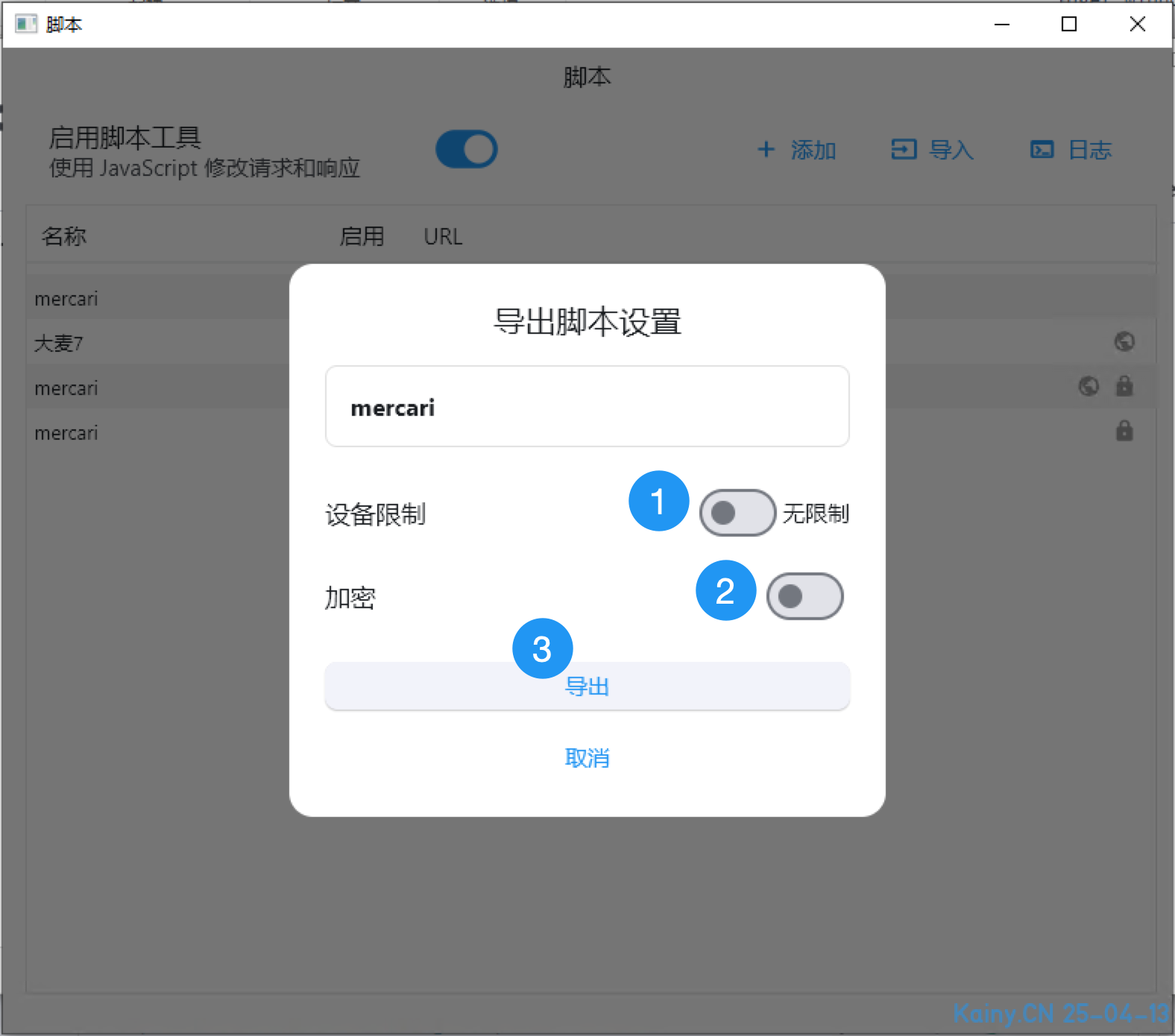 脚本弹窗中可以查看脚本名称,设置导入次数限制,以及是否加密脚本。